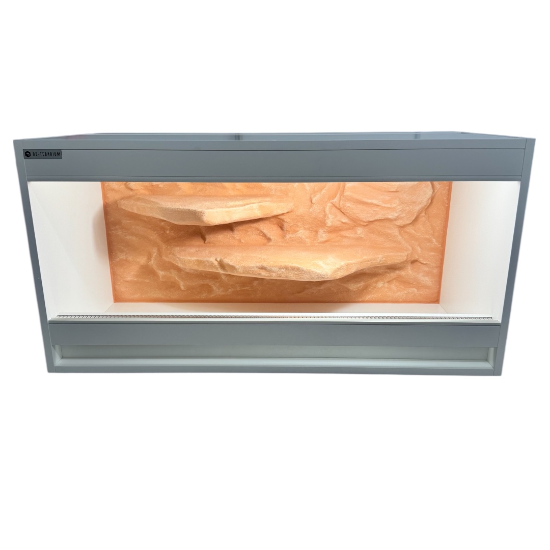 Terárium je osazeno skleněnými dvířky o síle skla 4mm v posuvných lištách.